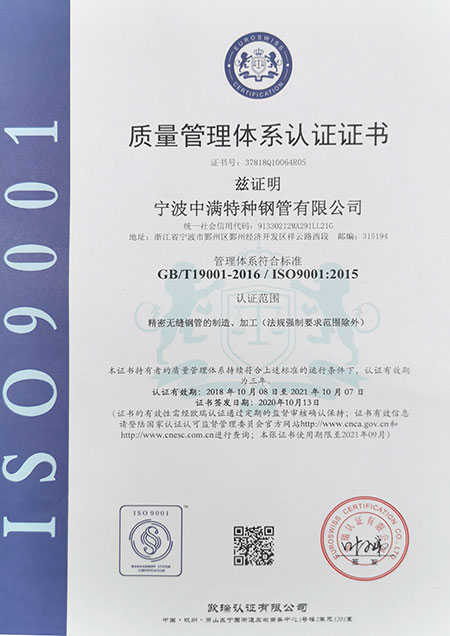 寧波中滿特種鋼管有限公司是一家專業(yè)生產(chǎn)精密光亮無縫鋼管、碳結鋼無縫鋼管、合金鋼管、異型鋼管、方管、六角鋼管、無氧光亮退火精密鋼管、汽車零部件用精密無縫鋼管、高壓膠管管芯用精密管。
